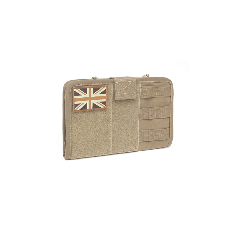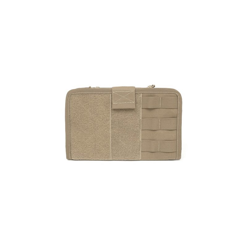 Uvnitř se nachází 2 vnitřní kapsy, elastická poutka různých velikostí (na psací potřeby, chemická světla, kompas, nůž atd.) a průhledný obal na mapu, který chrání navigační pomůcky před deštěm a nečistotami. Vnější část je vybavena rozsáhlým VELCRO panelem na jmenovky nebo insignie a dvěma sloupci MOLLE vazby pro připojení další výbavy. Pouzdro je MOLLE kompatibilní a zabírá šířku 6 horizontálních sloupců. Lze jej připevnit na vesty, chest rigy, batohy nebo jinou taktickou výstroj. Díky IR odrazové úpravě povrchu je panel vhodný i pro profesionální použití.