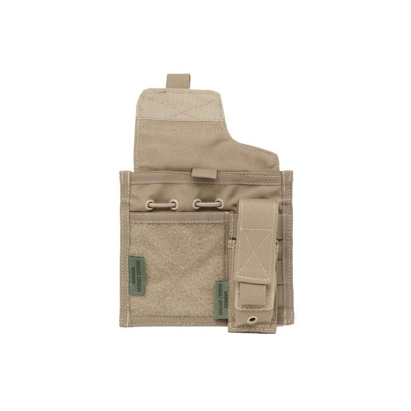 Warrior Admin Panel od Warrior Assault Systems je navržen pro uložení map, identifikačních dokumentů, šablon MEDEVAC / CASEVAC, CAS nebo Call for Fire. Po nadzvednutí klopy se zpřístupní 2 samostatné kapsy, z nichž jedna je vybavena elastickými poutky pro uložení IR markerů, popisovačů nebo lightsticků (chemických světel). Přední strana je opatřena VELCRO panelem pro umístění nášivek, vlajek nebo ID označení. Díky MIL-SPEC materiálům a promyšlenému členění je tato adminka určená pro profesionální členy ozbrojených složek i vyznavače MilSim airsoftu, kteří vyhledávají reálnou armádní výstroj. Na přední straně panelu jsou 2 popruhy MOLLE / PALS vazby, na kterých je odnímatelná uzavřená sumka pro pistolový zásobník (na prodejně jsme vyzkoušeli zásobníky Glock G17, CZ-75, TM Model 17, WE R17, TM Hi-Capa 5.1) nebo multitool.