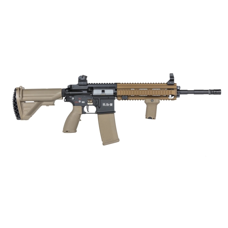 HK416 je standardní model, který nabízí robustní a spolehlivou konstrukci s možností výměny hlavně různých délek (10.4", 14.5", 16.5", 20"). Tento model je vybaven standardním plynovým systémem Heckler & Koch.