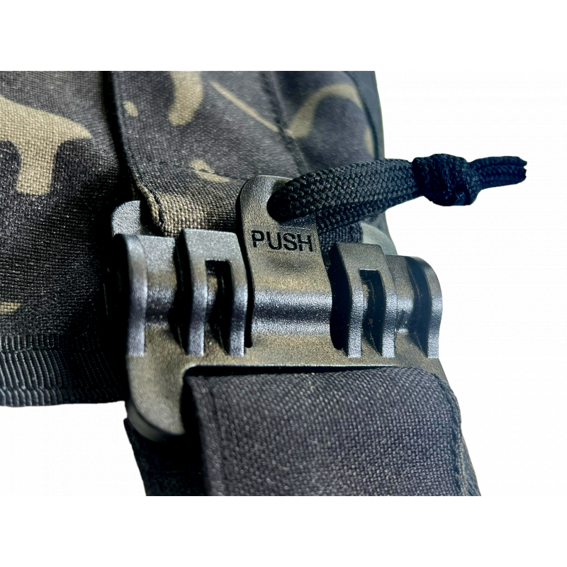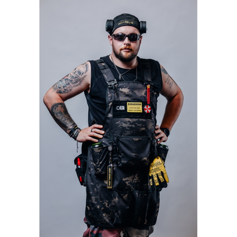 Tato zástěra z odolné tkaniny Cordura je vybavena laserem řezaným (laser-cut) molle panelem na hrudi, který umožňuje připevnění sumek pro grilovací výzbroj a zároveň na něj lze díky suchému zipu (velcro) připevnit i nášivky (morale patch).