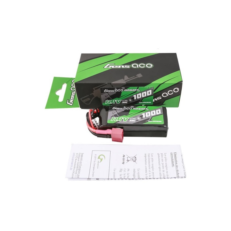 Gens ACE současně patří mezi absolutní špičku v oblasti baterií pro FPV drony, RC modely i airsoftové zbraně. Jejich Li-Pol baterie poskytuje lepší energetickou účinnost a vyšší výkon v porovnání s tradičními NiMH bateriemi, zároveň je daleko menší než Li-Ion baterie a snáze ji umístíte do zbraně, aniž byste museli mít baterii ve venkovních kapsách nebo imitačních PEQ boxech, takže si zachováte realistický vzhled zbraně (povinnost pro každého Mil-Sim operátora a Reenactora). Díky Li-Pol bateriím také získáte rychlejší odezvu spouště, vyšší kadenci a delší provoz i v chladném počasí. Baterie je vybavena konektorem T-Dean a balančním vyrovnávacím konektorem pro bezpečné a efektivní nabíjení. Všechny Gens ACE baterie jsou vybaveny kvalitními články, které zajišťují stabilní a vysoký výkon.