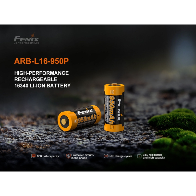 Fenix ARB-L16-950P je výkonný Li-ion akumulátor s kapacitou 950 mAh, navržený pro moderní svítilny a čelovky s vysokým proudovým odběrem. Díky ochraně proti přebití, vybití, zkratu a vysokému proudu se jedná o bezpečnou a odolnou volbu pro náročné použití v terénu.