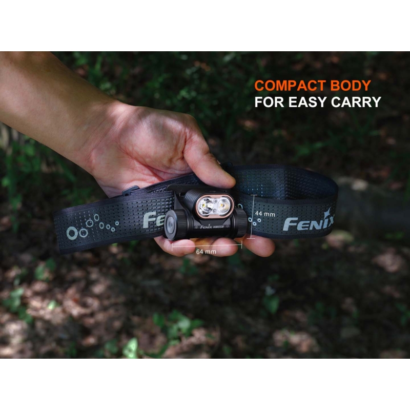 Nabíjecí běžecká čelovka HM55R od Fenix v provedení černá.