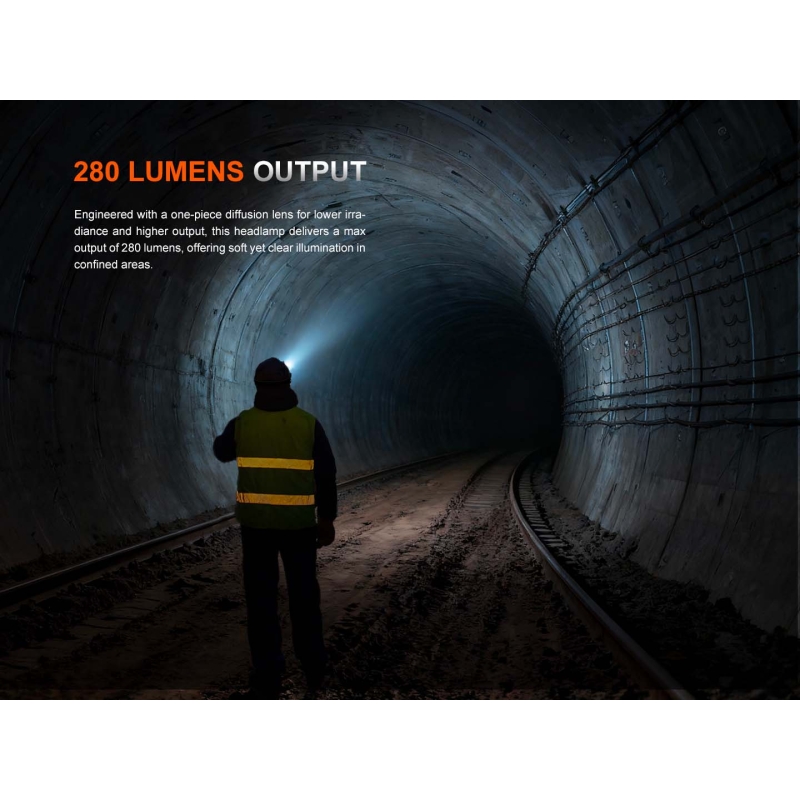 Maximální výkon 280 lm s velmi širokým kuželem.