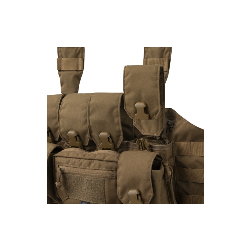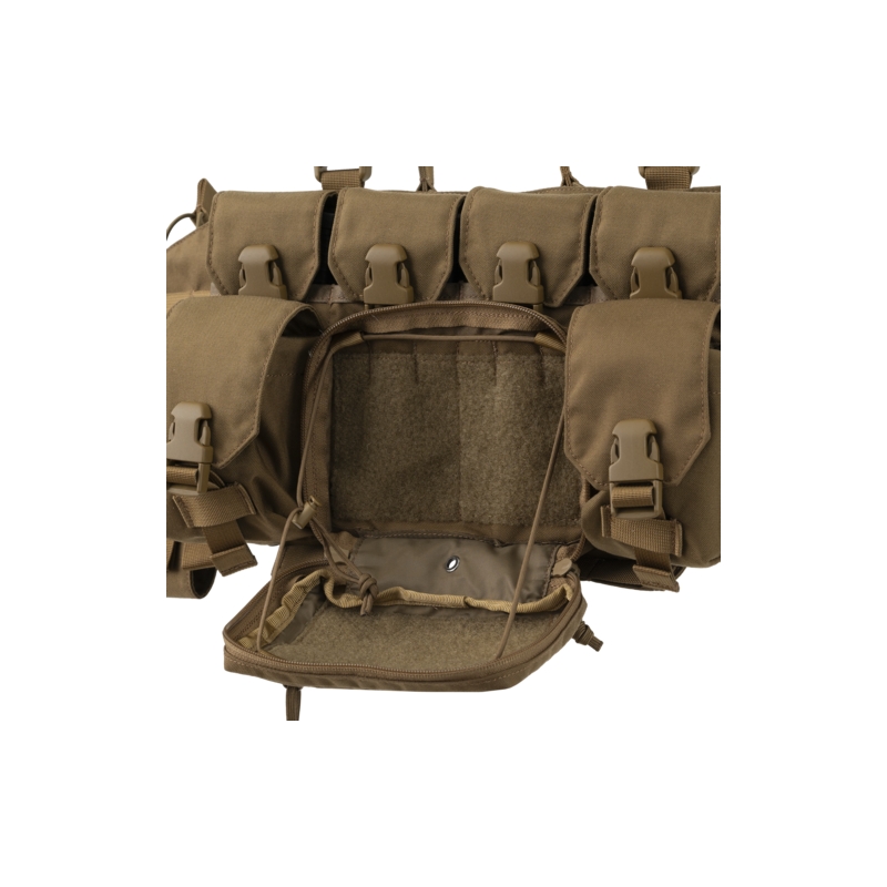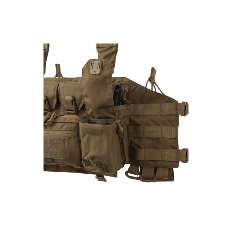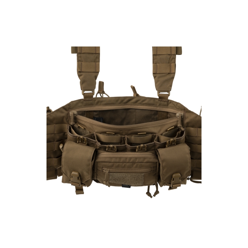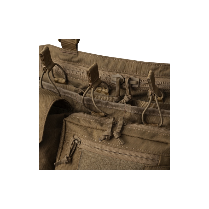 Po stranách administrativní kapsy jsou dvě univerzální kapsy na přezky, vhodné pro uložení granátů nebo pistolových zásobníků (při použití vložek z Competition série). Na bocích je vazba kompatibilní se systémem MOLLE, což umožňuje přidání dalších sumek nebo příslušenství. Uvnitř chest rigu se nachází velká kapsa na zip, která je ideální pro přenášení map, zápisníků a dalších drobností. Z vnitřní strany jsou umístěny dvě ploché kapsy, které lze využít pro uložení radiostanic.