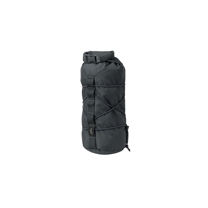 Na vnější straně vaku naleznete přezky typu slick-clip a elastickou šňůru, kterou lze stáhnout pomocí plastové brzdičky. Objem vaku lze flexibilně upravit díky rolovacímu vršku a elastické kompresní šňůrce.