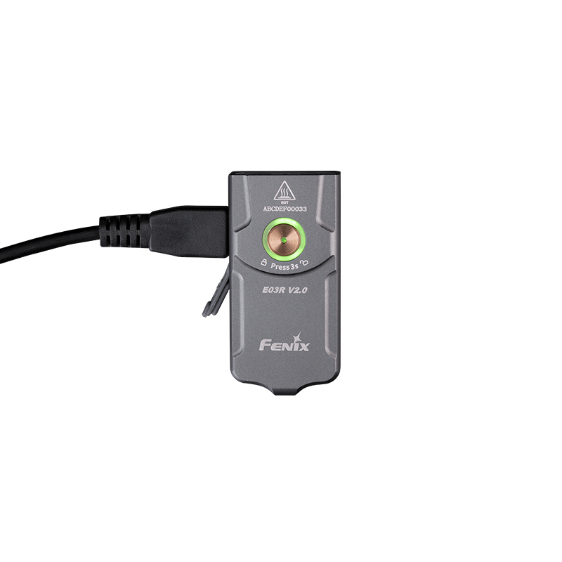 Jediný vypínač slouží k zapnutí/vypnutí a sedmi režimům osvětlení, včetně čtyř úrovní jasu, červeného světla, červeného blikání a pulzního světla. Velký indikátor stavu nabití baterie vás informuje o tom, že je čas dobít vestavěnou baterii prostřednictvím nabíjecího portu USB-C. Tato svítilna je odolná díky své celokovové konstrukci a stupni krytí IP66, takže je odolná proti vodě a prachu. Svítilna Fenix E03R V2.0 bude vítaným doplňkem vaší klíčenky.