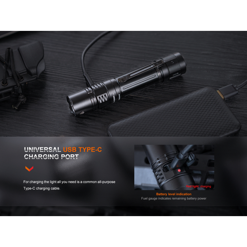 Taktická LED svítilna Fenix PD36 PRO nabízí vysoký světelný tok až 2800 lumenů, dosvit dalekých 380 metrů, nabíjení přes USB-C konektor a maximální délku svícení až 42 hodin. Taktický duální přepínač na zadní straně svítilny se snadno ovládá a nabízí 6 režimů svícení.