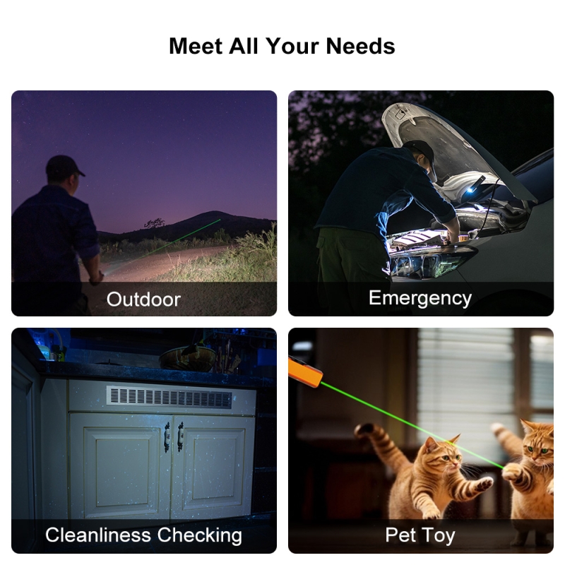 Svítilna obsahuje i zelený laser, 900 mW UV osvětlení, funkci stroboskop.