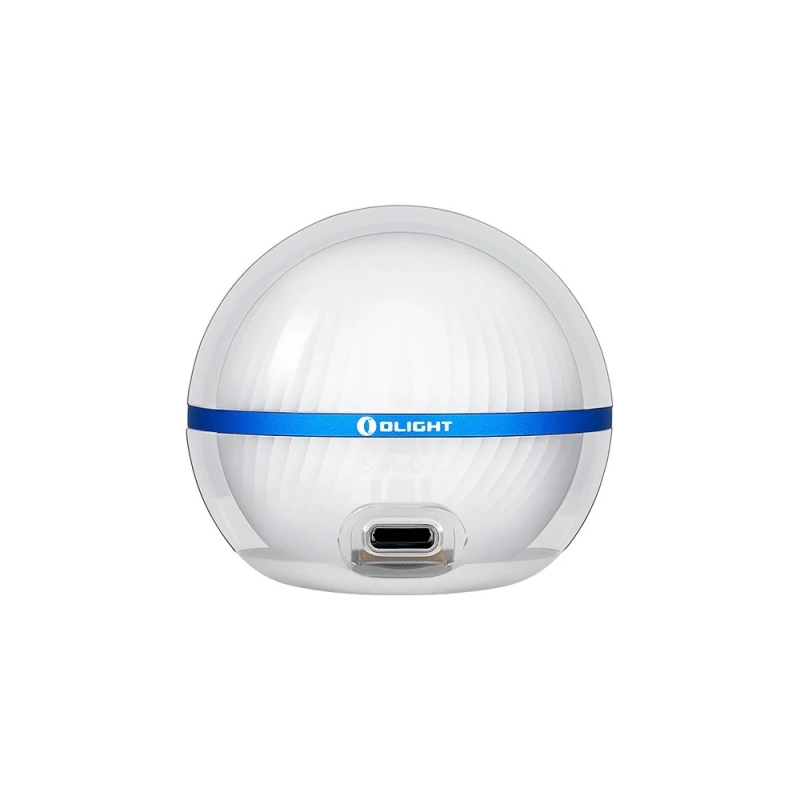 Ambientní svítilna Sphere C od OLIGHT v provedení bílá s modrým proužkem.