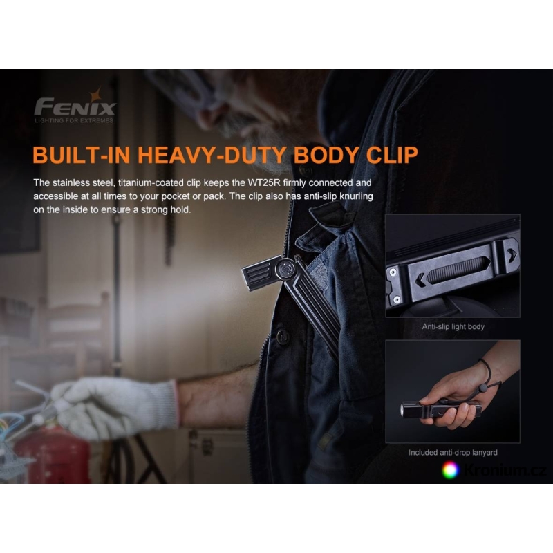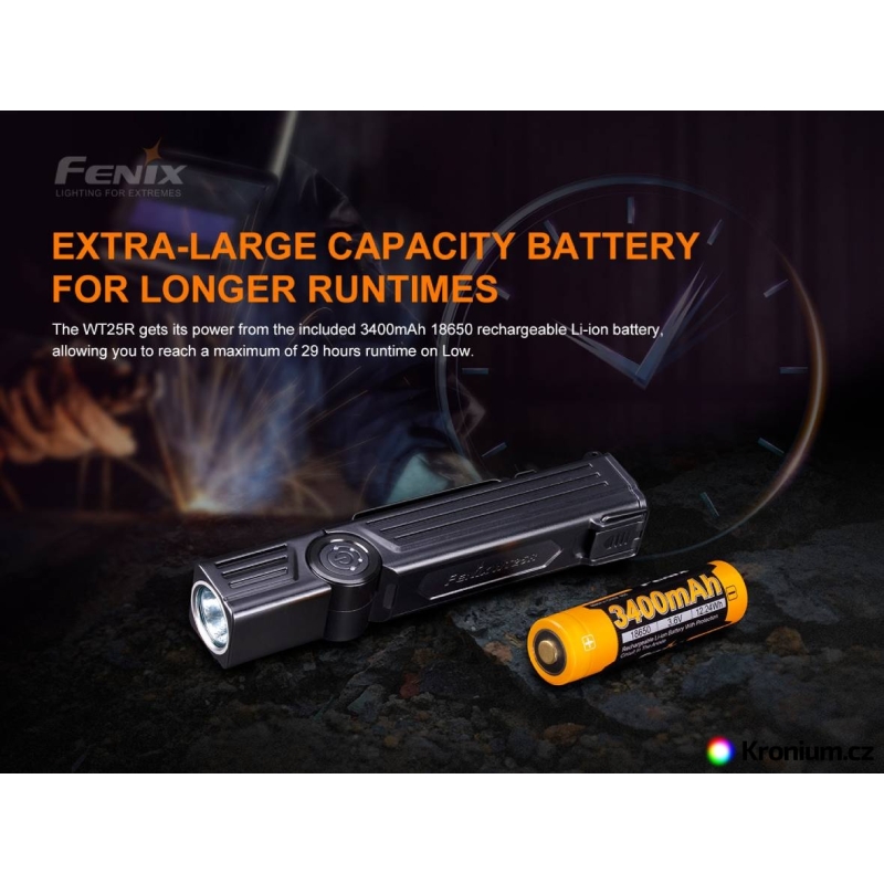 Hledáte pracovní svítilnu, která se přizpůsobí každé situaci? Potřebujete světlo do dílny, na servis, kempování nebo pohyb v terénu? Chcete svítilnu, kterou připnete na opasek, přichytíte magnetem nebo postavíte na stůl? Pak je Fenix WT25R přesně pro vás. Díky unikátní kloubové konstrukci lze hlavu svítilny naklápět v rozsahu 105°, takže si světlo vždy nasměrujete tam, kam potřebujete. Výkonná dioda LED Cree XP-L HI poskytuje až 1000 lumenů s dosvitem 220 metrů, přičemž digitální regulace udržuje konstantní jas. Svítilna je napájena dobíjecím Li-ion akumulátorem 18650, který se nabíjí pohodlně pomocí magnetického USB kabelu přímo ve svítilně. Robustní konstrukce, voděodolnost IP66 a nízká hmotnost dělají z WT25R ideální pracovní svítilnu.