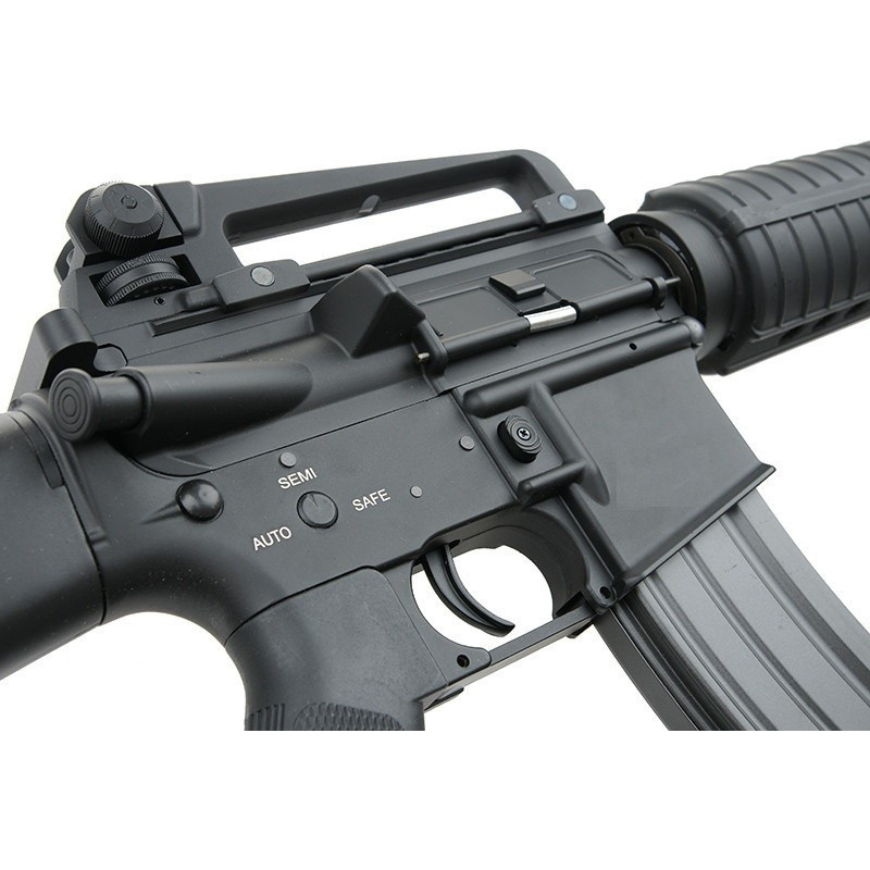 Legenda bojiště z dalekého Vietnamu, dlouhá varianta útočné pušky AR-15 s modelovým označením M16 A1 od Double Bell. Modernizované kovové tělo, odolný mechabox s rychlou výměnou pružiny, 8mm kuličková ložiska, protitlaká vzduchotechnika, 6.03mm přesná hlaveň jsou pádné argumenty k tomu, rozšířit svoji sbírku o tuto krásku!