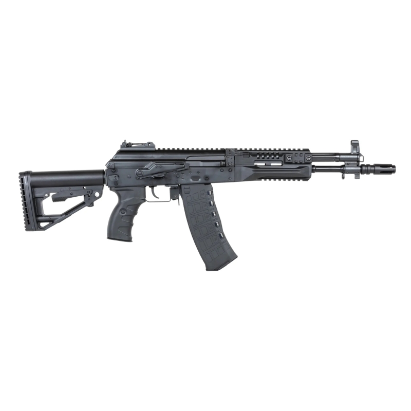 Sklopná tubusová pažba ve stylu AK12 je vyrobena z nylonového polymeru, což snižuje celkovou hmotnost zbraně, aniž by došlo ke ztrátě pevnosti. Součástí balení je také tlumič výšlehu, který lze snadno vyměnit díky klasickému levotočivému závitu M14-mm CCW.