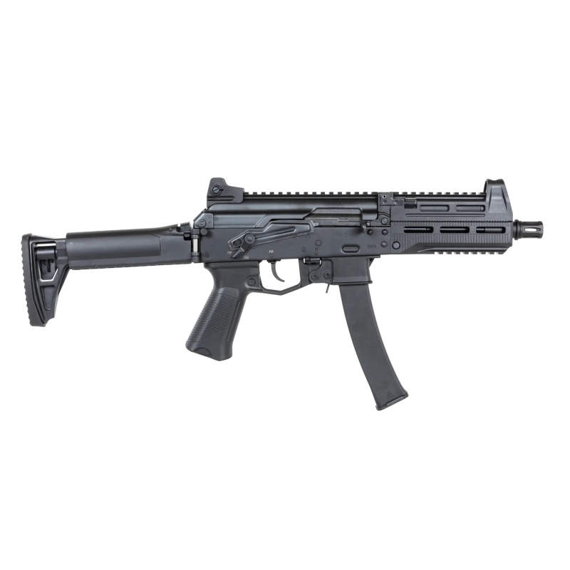 Sklopná výsuvná pažba je vyrobena z nylonového polymeru, což snižuje celkovou hmotnost zbraně, aniž by došlo ke ztrátě pevnosti. Součástí balení je také tlumič výšlehu, který lze snadno vyměnit díky klasickému levotočivému závitu 14-mm CCW.