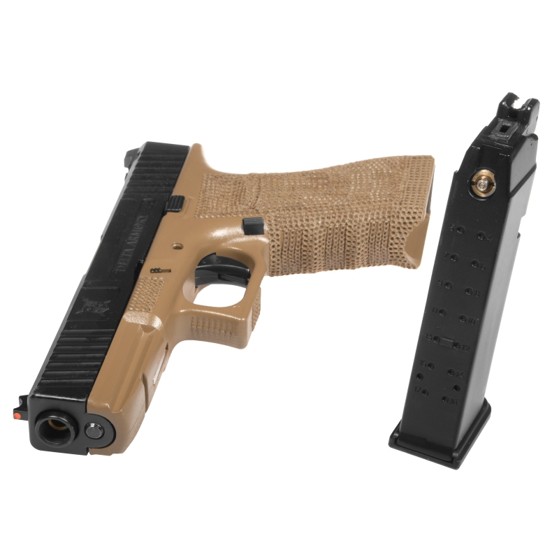 GBB plynová pistole P04 G-series (P17) od Delta Armory v provedení písková.