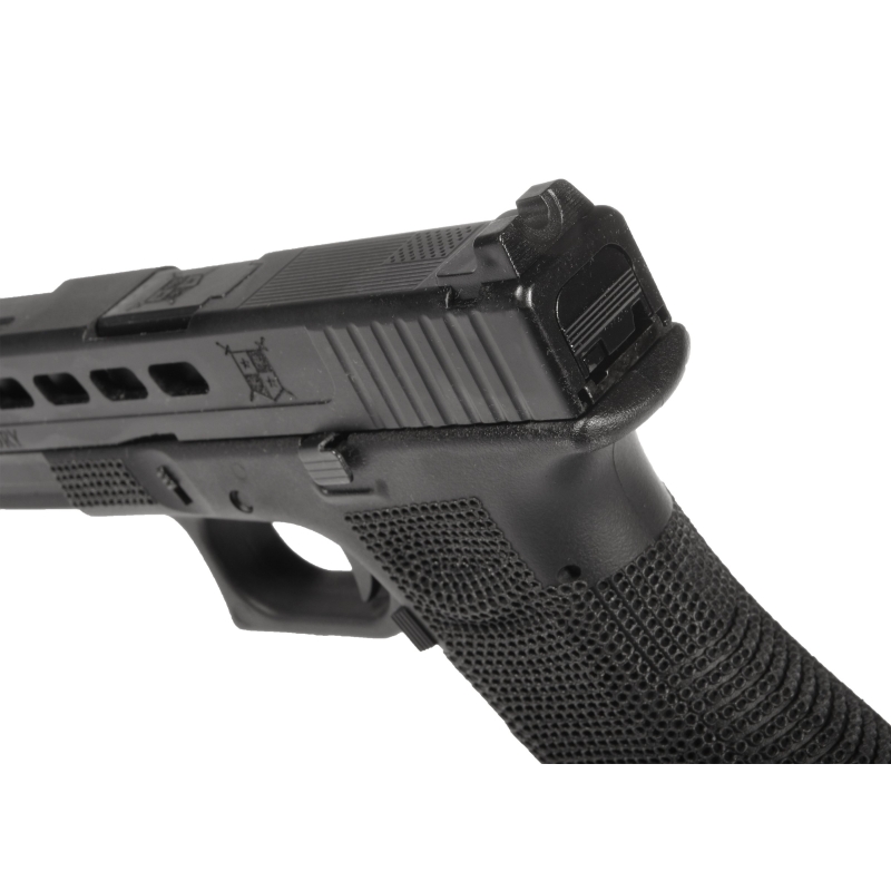 Závěr zbraně je celokovový a zpracovaný CNC obráběním, což zajišťuje vysokou odolnost a hladký chod při střelbě. K dispozici je hned několik variant provedení CNC závěru (P01-P06), které se liší počtem odlehčujících otvorů pro snížení váhy včetně verzí bez otvorů s plným rámem a dále se liší podle vzoru drážkování rámu či designem. Rám pistole je vyroben z odolného polymeru a obsahuje ručně zpracovaný stippling grip, který výrazně zlepšuje úchop a kontrolu při manipulaci.