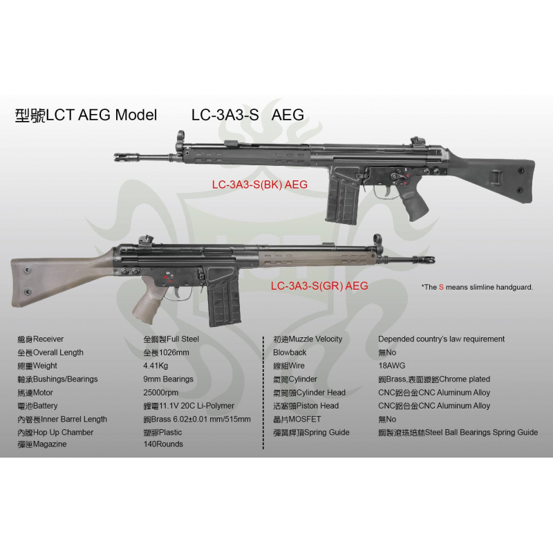 LC-3A3 je první celoocelová replika svého druhu světoznámé pušky G3, na světě. Vyjímku tvoří pažbička, pažba a předpažbí - tyto 3 věci jsou vyrobeny z nylonového vlákna, stejné jako ostrá G3.