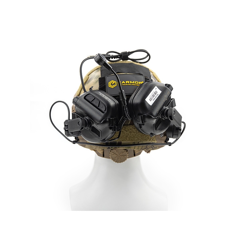 Elektronický headset M32H PLUS od EARMOR v provedení černá. Nabízí aktivní ochranu sluchu (tlumí hluk a naopak zesilují nízké zvuky a řeč). Vylepšená verze PLUS (2024) s náušníky z gelového silikonu proti přehřívání uší. Napájení obstarají 2 baterie AAA (nejsou součástí) s výdrží až 350 hodin (automatické vypnutí po 4 h). Montáž typu ARC na přilbu.