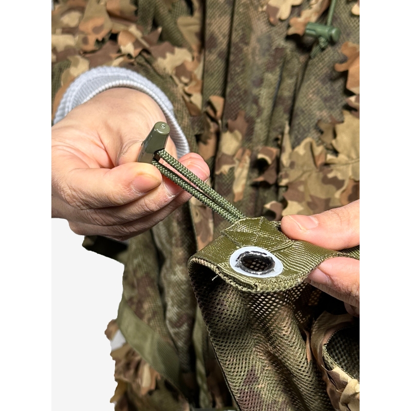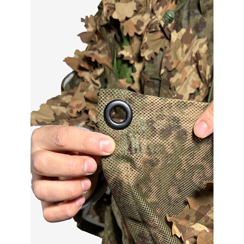 Speciální systém stahování a oček po vzoru služebního ponča US Army poskytuje voděodolnost a tepelnou izolaci, což z něj dělá celoroční řešení před nepřízní počasí. Celý povrch ponča je opatřen mřížkou, která usnadňuje přidávání okolní vegetace jako přírodního maskování.