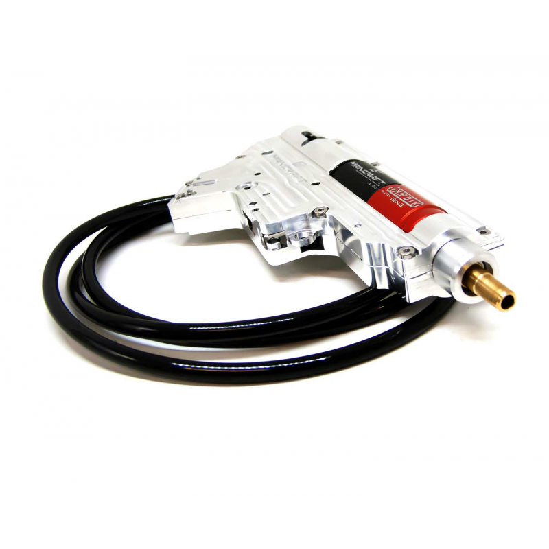 Set umožní snadnou přestavbu AEG zbraně na pneumatický HPA pohon pro maximální přesnost a stabilitu výkonu. Díky nezávisle pohyblivé trysce, která při výstřelu zůstává v komoře, je zajištěna výborná těsnost a konzistence střelby, a tím vyšší přesnost. Set obsahuje CNC obráběný mechabox V2 s prodloužením okolo trysky ze slitiny 7075 T652, profesionálně upravený pro montáž systému PDiK. Celý systém funguje pouze v režimu jednotlivých ran (semi-auto), což je ideální pro DMR a odstřelovací pušky. Výkon je plně nastavitelný přes regulátor (není součástí) v rozsahu cca 7–16 bar (100–230 PSI). Systém je plně mechanický, takže se obejdete bez elektroniky nebo baterií a nemusíte řešit ani extrémní počasí. Průměr hadice je 6 mm. Pro plnou funkčnost systému tedy musíte dokoupit HPA regulátor na lahev, dále 6mm spojku mezi hadici a zbraň, HPA lahev a samozřejmě HPA hadici mezi zbraň a regulátor. Do mechaboxu je nutné instalovat spoušť, zarážku spouště a kulisu přepínače střelby. Doporučujeme i sumku pro HPA lahev.