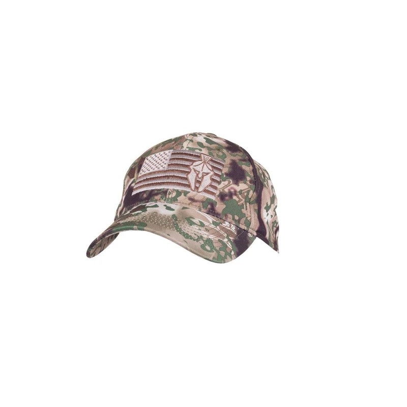 Univerzální maskovací vzor Kryptek a vlajka USA se vsazenou spartskou helmou.