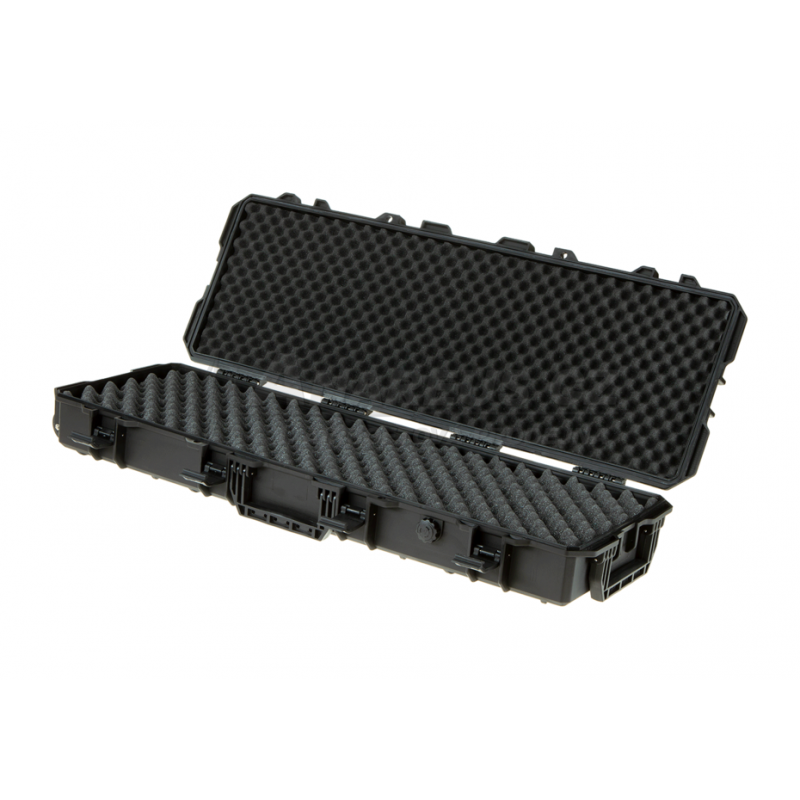 Robustní plastový kufr Hard Case od Nimrod je ideální pro bezpečné uložení a přepravu zbraní. Kufr je odolný proti prachu a vodě (IP67), tím zajišťuje spolehlivou ochranu v jakýchkoliv podmínkách. Díky drážkám na povrchu lze kufry snadno stohovat na sebe, což šetří místo při skladování nebo přepravě celé jednotky v jednom vozidle. Kufr je vybaven 4 posuvnými zámky a otvory pro visací zámky pro ještě vyšší bezpečnost. Robustní rukojeť, transportní kolečka a odolná konstrukce z plastu odolného proti poškrábání zajišťují dlouhou životnost a jednoduchou manipulaci.