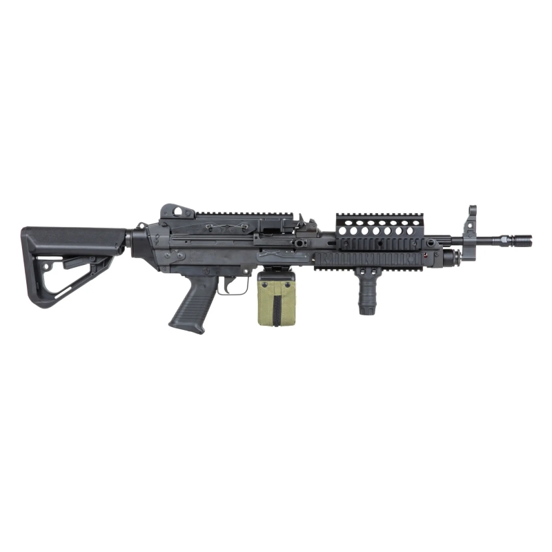 MK46 MOD 0 T8 SP Systems je vysoce detailní replika FN Herstal MK46 (Minimi), vyrobená ve spolupráci A&K se CYBERGUN a SP Systems. Tato airsoftová zbraň je licencovaná a vybavená autentickými značkami belgické zbrojovky FN Herstal pro hráče hledající realistický zážitek. Díky konstrukci z oceli, hliníku a polymeru nabízí vysokou odolnost a robustnost, ale zachovává si stále rozumnou váhu lehce přes 5 kg.