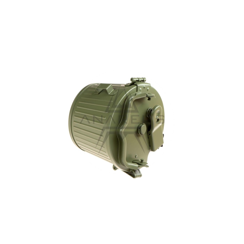 Elektricky poháněný bubnový zásobník od G&G, navržený speciálně pro kulomet GMG-42 (Maschinengewehr Modell 42). Zásobník má kapacitu až 1700 BBs a je vybaven automatickým mechanismem, který zajišťuje plynulé podávání kuliček během intenzivní střelby. Robustní kovová konstrukce zajišťuje odolnost i v náročných podmínkách.