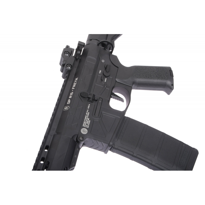 Tato celokovová replika se pyšní moderním designem těla zbraně, které vzešlo z návrhářských dílen na Slovensku. Mozkem i srdcem replik řady FREYA R15 je nejnovější opticko-magnetická procesorová jednotka Eagle ETU od Delta Armory.
