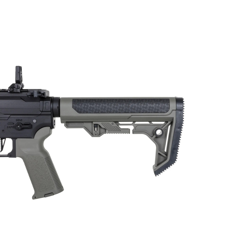 Hledáte vytuněnou airsofovou zbraň M4 s lehkým odolným tělem? Chcete mít ve zbrani špičkové vnitřní síly, brushless motor a elektronickou procesorovou jednotku (ETU)? Hledáte set zbraně s vhodnou výkonnou baterií a správnou nabíječkou, abyste už nic nemuseli shánět? Potom je tato puška M4 řady FLEX Gen2 ta pravá pro vás. Jedná se totiž o vylepšenou sérii FLEX™ Gen2 od Specna Arms, která klade důraz na nízkou váhu nylonového těla, ale zároveň na špičkové provedení a slícování. Tělo je tvrzeno skelnými vlákny a je odolnější, než běžné zinkové slitiny u levných kovových těl, což ocení nejen začátečníci, ale i pokročilí hráči, kteří preferují rychlou akci ve stylu speedsoftu, kde každý gram je jen zátěž navíc. Tento typ těl najdeme například i na zbraních CZ Scorpion Evo nebo MP7. Řada FLEX je v podstatě bratrem řady CORE, u které najdeme CNC kovové předpažbí, zatímco tato řada FLEX má předpažbí také z nylonu. Největší inovací Gen2 jsou ale vnitřní díly, ty jsou totiž absolutně vytuněné jako u vlajkové řady PRIME™.
