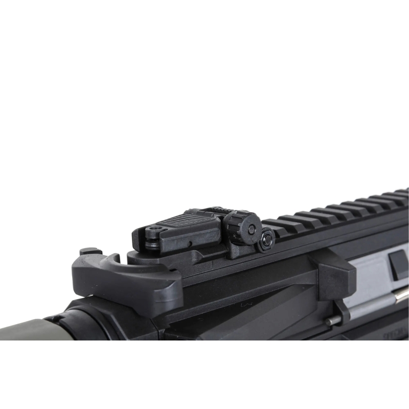 Replika Specna Arms M4 Carbine RL M-LOK Gen2 (SA-F05-RL FLEX™ BLDC™ HAL ETU™) vyniká kvalitním vnějším zpracováním nylonového těla, které má matný vzhled a působí velmi realistickým dojmem. Díky tvrzení skelnými vlákny je i velmi odolné a zároveň lehké. Vnější hlaveň je vyrobena z kovu a šrouby, vyhazovací okénko a kolíky jsou dokonce vyrobeny z oceli. Ergonomický design pušek AR15 a moderní konstrukce RL zaručují pohodlné držení a snadné ovládání, tahle puška prostě padne do ruky! Nylonové M-LOK předpažbí M4 umožňuje připnutí různého příslušenství jako grip, AN/PEQ box, svítilna apod. S nastavitelnou pažbou typu Light Ops je zbraň připravena na vložení baterií typu Buffer stick. Celkově jde o pušku, která spojuje nízkou váhu a skvělé vnitřní díly s atraktivní cenou.