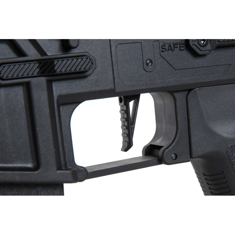 Specna Arms M4 CQB RL M-LOK Gen2 (SA-F04-RL FLEX™ HAL ETU™) sází na lehké, ale odolné nylonové tělo RL AR15 řady FLEX™ vyztužené skelnými vlákny, které má matný realistický vzhled a zároveň zvládne i tvrdší zacházení, protože je pevnější než levná kovová slitinová těla. Jedná se o model RL SAAS (Specna Arms Accessory System), který má agresivnější design a vizuálně se odlišuje od klasických receiverů typu AR15. Nylonová vnější hlaveň se 14mm CCW závitem a ocelové doplňky jako šrouby, čepy nebo vyhazovací okénko dodávají zbrani pevnost tam, kde je to potřeba. Výsledkem je extrémně lehká, ale zároveň odolná útočná puška, která se skvěle ovládá a je jako dělaná pro CQB akce a dynamický styl hry. Ovládání platformy AR15 (M4) je přirozené a rychle si na něj zvyknete. Nechybí oboustranná natahovací páka, přehledný přepínač střelby ani snadný přístup k nastavení hop-upu přes vyhazovací okénko. M-LOK předpažbí umožňuje montáž doplňků jako přední rukojeť, taktická svítilna nebo laserový PEQ box. Nová Light Ops pažba s pogumovanou lícnicí s QD body pro oko popruhu drží nízkou hmotnost celé sestavy. Baterie se umisťuje do tubusu pažby, takže je potřeba použít baterii typu Buffer stick. Celkově jde o výkonnou zbraň, která spojuje nízkou váhu, moderní konstrukci a výborné vnitřní díly Gen2 v jedné dostupné platformě. Na řadě FLEX™ Gen2 oceňujeme kvalitu zpracování, protože na první pohled tělo působí velmi odolně, zároveň dostanete i našlapané vnitřní díly jako prémiový mechabox Æther™ s moderní procesorovou jednotkou HAL ETU™, kovovou trysku, TDC hop-up komoru s flat gumičkou Helium™ a přesnou vnitřní hlaveň o průměru 6,03 mm.