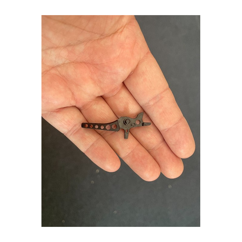 CNC spoušť vyrobená z vysoce pevného hliníku EN AW 2007. Spoušť je určena pro airsoftové zbraně typu M4 a její klony. Vyznačuje se velmi rychlou odezvou při zmáčknutí spoušťě. Chod spouště je zrychlený o cca 70%. Povrchová úprava dekorativním eloxováním.