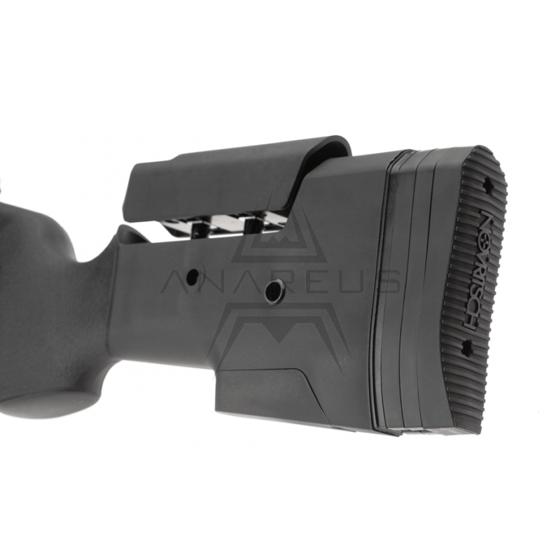 Černá odlehčená pažba se stavitelnou lícnicí.