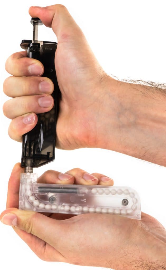 Rychloládovačka (plnička) pro tlačné airsoftové zásobníky od BLS v provedení transparentní. Kapacita 90 BBs. Malé rozměry vhodné do pistolové sumky. Tvrzený plast pro vyšší odolnost. O-kroužek v hrdle zabraňuje ztrátám kuliček při plnění.