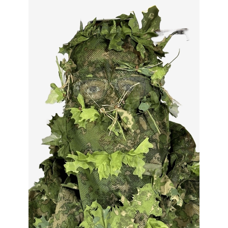 KMCS maskovací kukla Balaclava od KMCS (Kicking Mustang Concealment System). V neuvěřitelné kamufláži Next-Gen Green. Promění váš obličej na suchou větev! Je lehká, pevná a prodyšná. Obsahuje 3D listy a prodloužené "vousy" pro rozbití kontur obličeje. Nastavuje se pomocí 2 pásků a umožňuje připnout okolní vegetaci.
