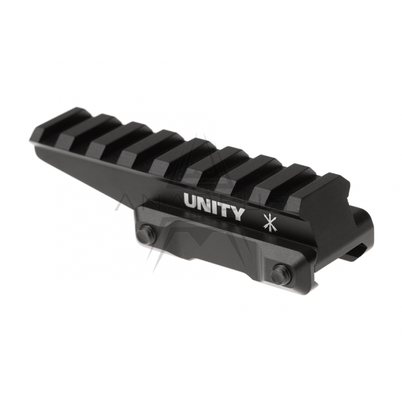 Unity FAST™ Micro Riser od PTS je vyrobený z hliníkové slitiny 6000 s černým eloxováním. Bezpečně zvedá kolimátory blokového typu se standardní spodní 1/3 cowitness picatinny montáží na výšku 2,26 optické středové osy.