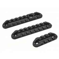 Nylonová RIS lišta M-RAIL pro M-LOK od ASG v provedení černá. 3 kusy v balení včetně šroubů a matic. Délka 60 mm, 5 slotů. Univerzální montážní lišta pro M-LOK systémy. Kompatibilní se všemi 21mm RIS / Picatinny doplňky. Pevný nylon poskytne perfektní odolnost, nízkou váhu a neřeže do rukou.