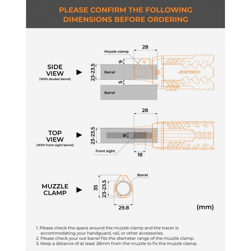 32mm Quark-R Tracer adaptér pro TM SGR-12 od AceTech v provedení černá. Navržen specificky pro AEG brokovnici Tokyo Marui SGR-12 a nasvětlovací tlumiče Quark-R od AceTech. Snadná montáž a demontáž díky šroubovacímu systému. Vyroben z odolného hliníku.