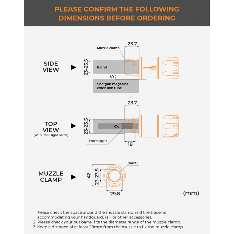 Určen pro brokovnice M870, AA-12 a SAIGA-12 s průměrem hlavně 23 - 23,5 mm.
