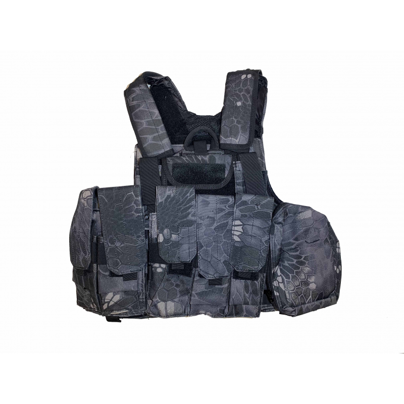 Vesta obsahuje admin kapsu,sumku na lékárničku, dvě sumky na pistolový zásobník, sumku na vysílačku, trojsumku na zásobníky M4/M16(na 6ks zásobníků) a dvojsumku na zásobníky M4/M16(na 4ks zásobníků). Vesta má MOLLE uchycení sumek. Váha : 2080g
