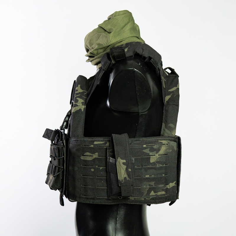 Celý nosič plátů je pokrytý laserem řezanou MOLLE vazbou (Laser-cut), která nejen dobře vypadá, ale i perfektně plní svůj účel. Takže se konečně můžeš ověnčit sumkami jako vánoční stromeček a mít po ruce všechno potřebné.