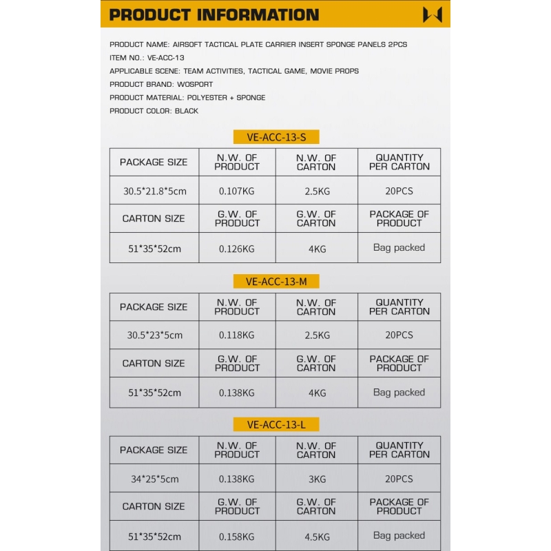 Pěnová replika SAPI balistických plátů od WoSporT vzhledem věrně kopíruje reálné balistické pláty, ale neposkytuje balistickou odolnost. Plát je vyroben z polyesterové pěny, kterou lze ohýbat, takže na rozdíl od plastových replik neomezuje v pohybu.