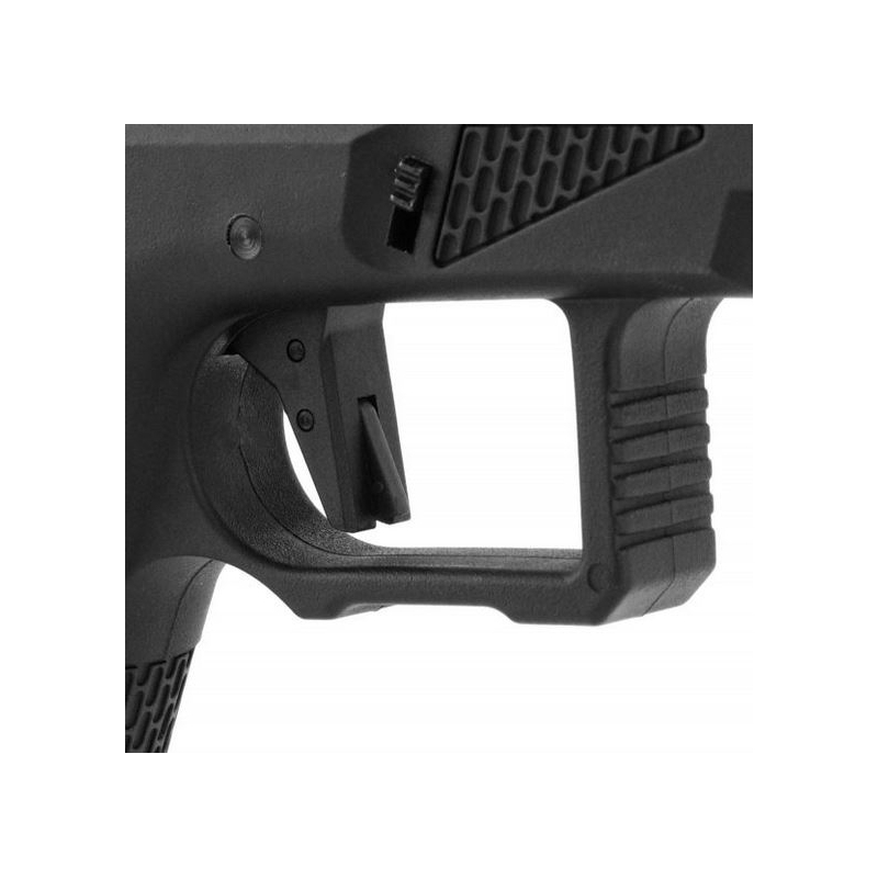 Rám pistole je vyroben z kvalitního polymeru a je osazen hliníkovým CNC závěrem. Díky závitu 14mm CCW můžete osadit pistoli nasvětlovací Tracer jednotkou nebo tlumičem. Na rámu najdete také RIS lištu pro příslušenství. Pistoli samozřejmě můžete nosit v běžných pouzdrech pro pistole Glock (G17). Z pistole SSP18 můžete také vytvořit malý samopal, stačí si dokoupit karabinový kit pro SSP18.