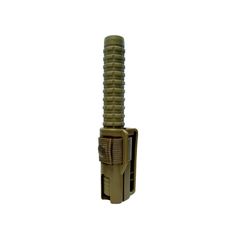 Teleskopický kalený obušek od ESP v délce 18" (450 mm) v černo-pískovém provedení. Určen pro profesionální použití i sebeobranu. Konstrukce z kalené oceli zaručuje maximální odolnost. Neohne se ani při opakovaných silných úderech. Protiskluzová gumová rukojeť s hrubým dezénem proti vytržení. Rotační plastové pouzdro pro rychlé tasení.