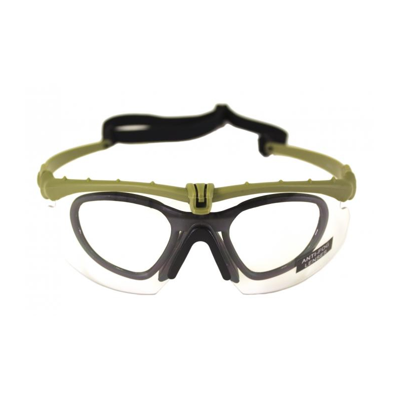 Ochranné střelecké brýle BATTLE PRO'S od NUPROL v provedení se zeleným rámem a čirými skly.
