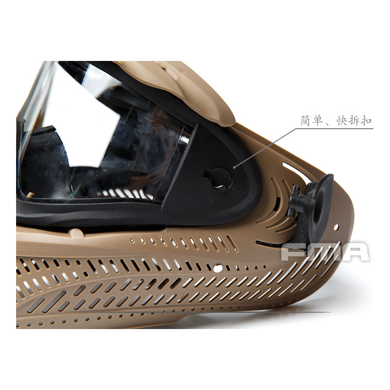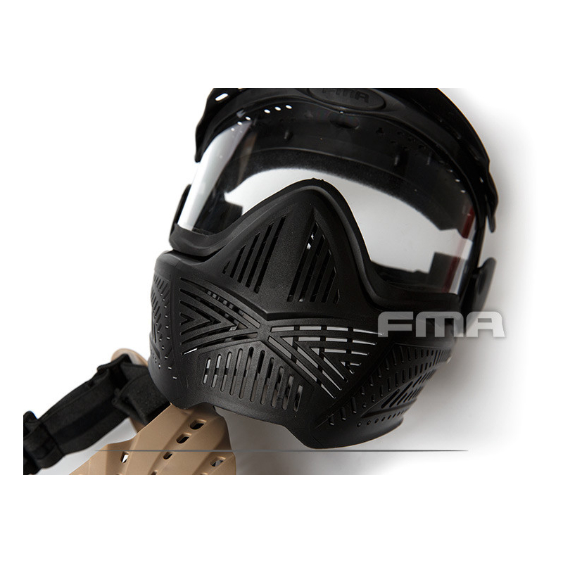 Tato celoobličejová maska od FMA poskytuje spolehlivou ochranu obličeje při airsoftu i jiných aktivitách, kde je vyžadována ochrana očí a obličeje v jednom. Maska je vybavena polykarbonátovými čočkami, které zajišťují vysokou pevnost a odolnost proti nárazům. Mřížková konstrukce těla masky z TPE (termoplastický elastomer) zajišťuje dobrou prodyšnost a pohodlí při delším nošení.