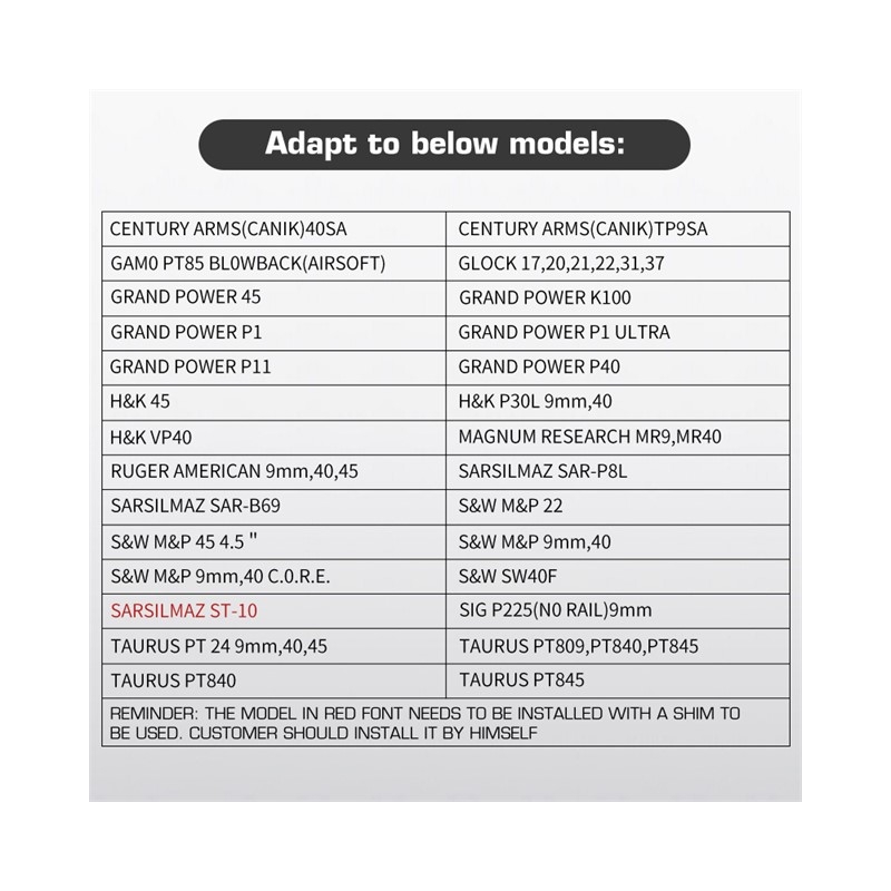 Pouzdro je nastavitelné pro většinu pistolí Full size jako G-series (17, 18C), P 226, M 92, i Hi-Capa nebo CZ 75.