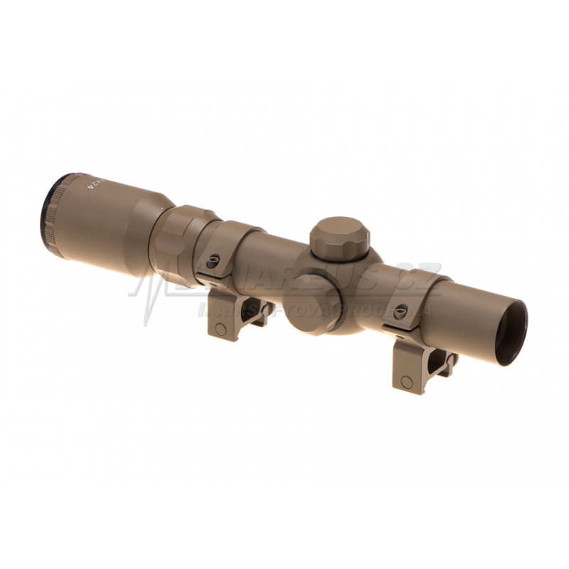 Optika přiblížením 1 - 4 x 24 bez nasvícení kříže. Balení obsahuje montážní kroužky na RIS