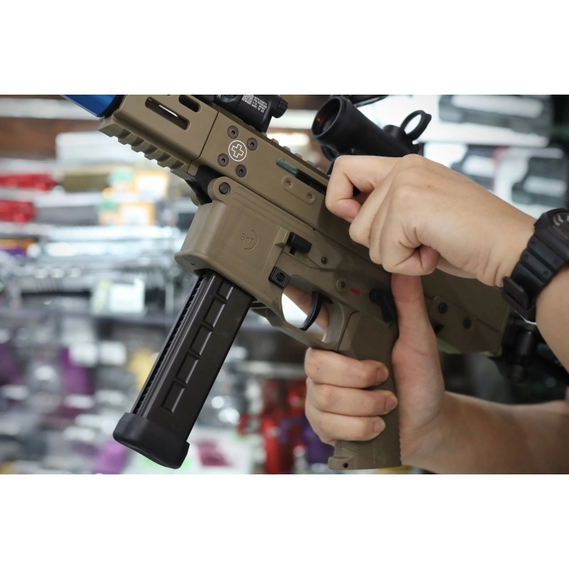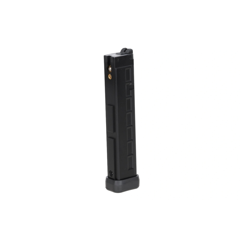 Hledáte robustní GBB zásobník pro vaši PDW zbraň GHM9, MP9 či VMP? Chcete stabilní průtok plynu a spolehlivý chod vašeho samopalu či PCC karabiny? Hledáte realistický těžký zásobník z hliníku? Pak jste jej našli. Tento odolný hliníkový zásobník s kapacitou 38 BBs je navržený na míru přímo pro B&T GHM9 Gen2 GBB od Lambda Defence. Lze jej ale použít i pro plynový samopal MP9 od KSC / KWA nebo ASG, zároveň ho však můžete používat i v plynové karabině VMP VORSK. Tělo zásobníku je z hliníkové slitiny, takže je velmi odolné a vydrží i drsnější přebíjení.